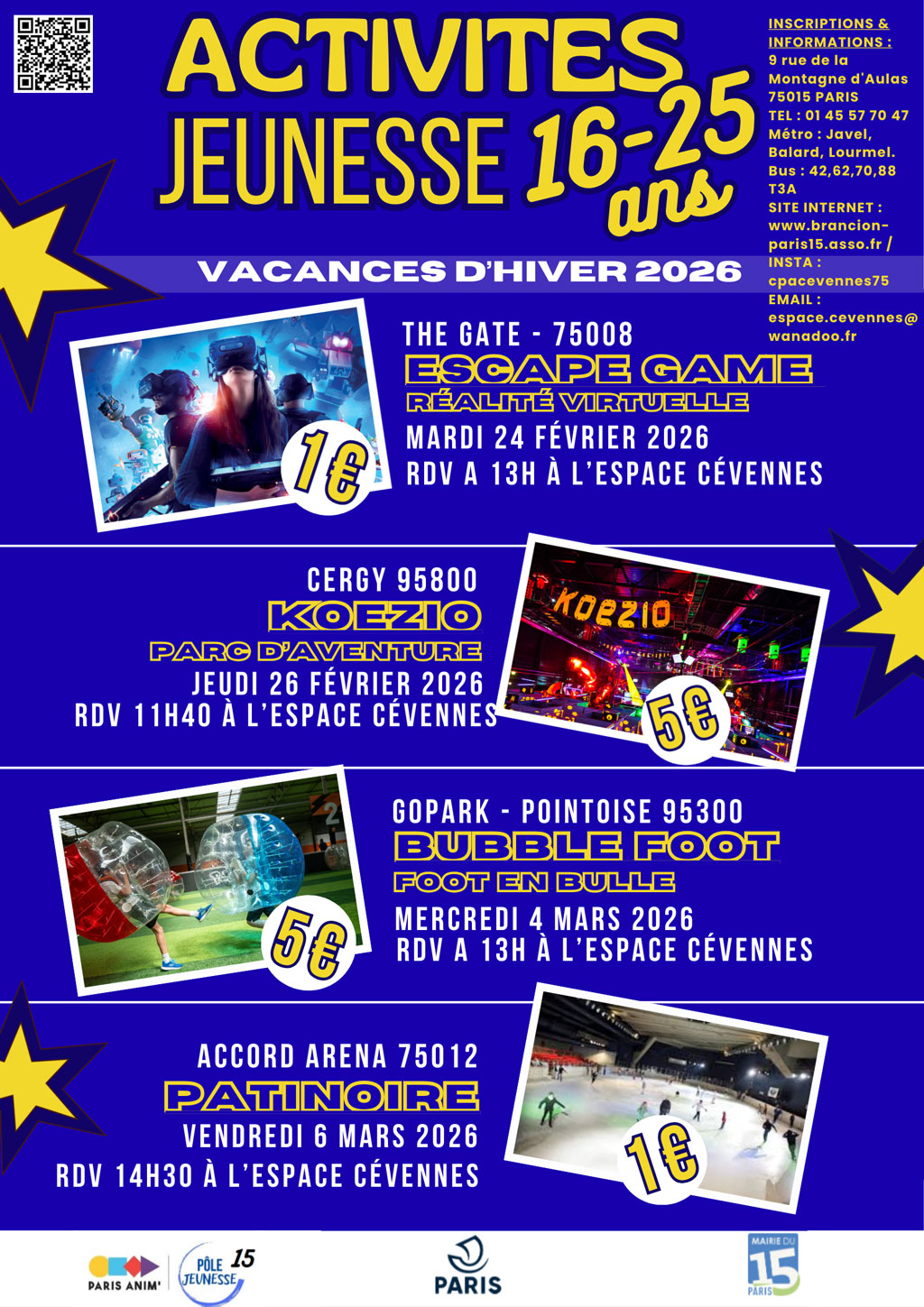 | KOEZIO – Parc d’aventure – Cergy – 5€ | Le jeudi 26 février 2026 Rdv à 11h40 à l’Espace Cévennes |