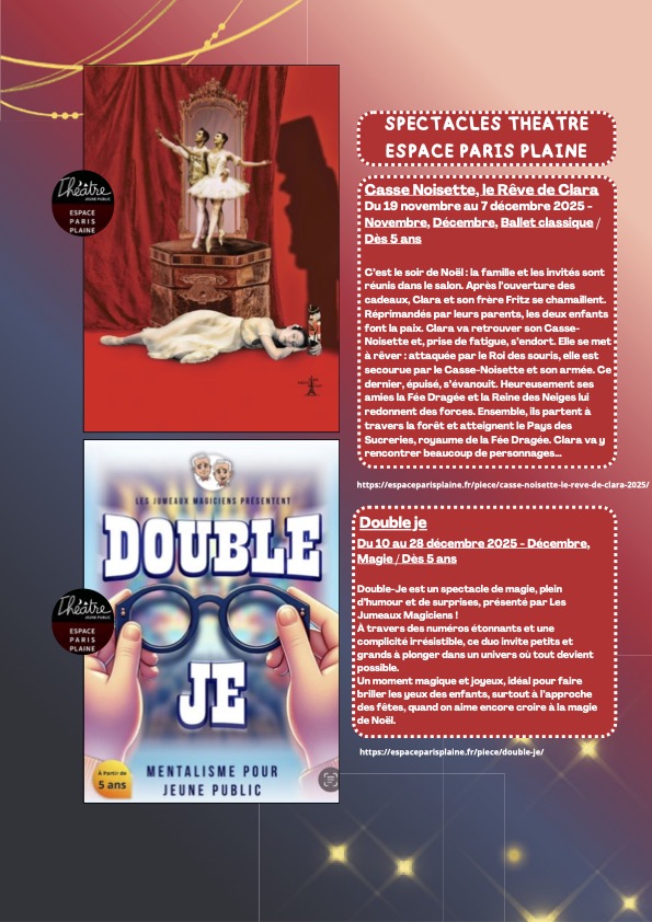 Les centres ESPACE CÉVENNES, SOHANE BENZIANE, BRANCION, THEATRE ESPACE PARIS PLAINE etFRERES VOISINS vous proposent des journées d’animations en famille et des spectacles